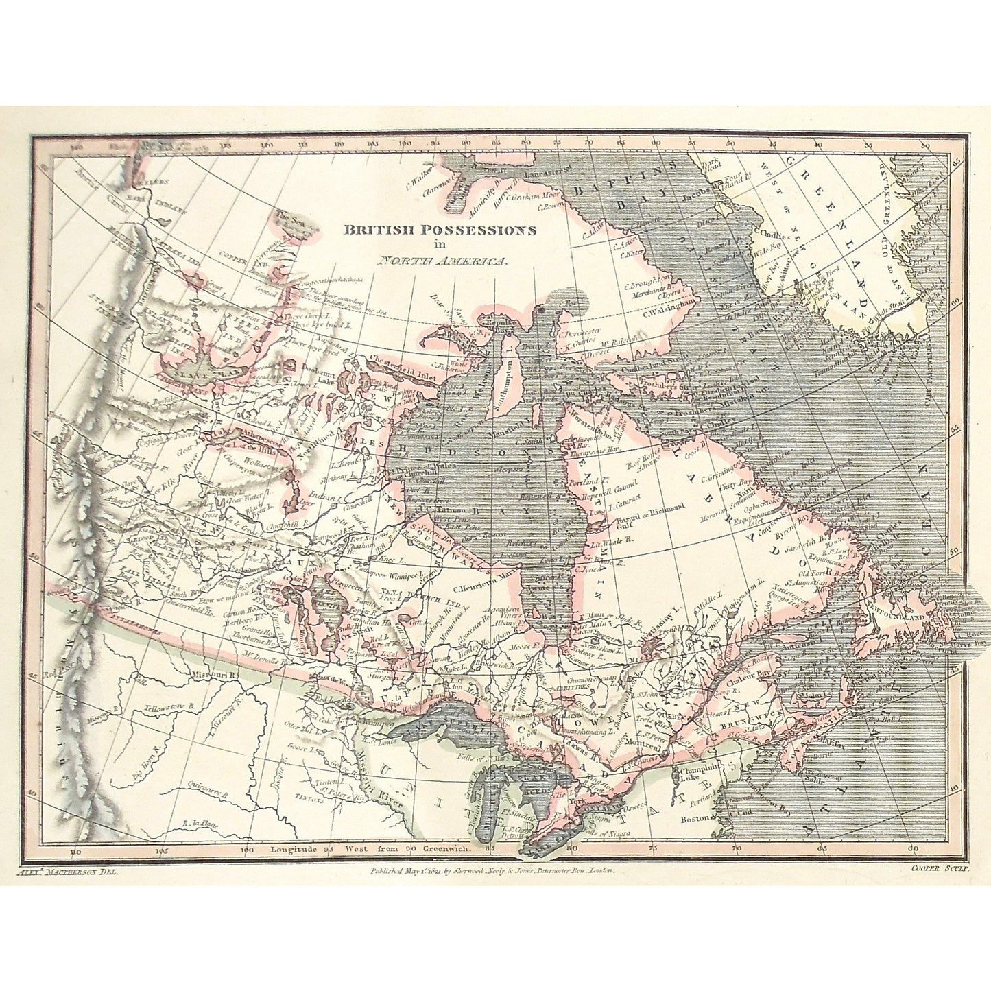 Keywords: British, Possession, North America, Greenland, Hudson's Bay, Labrador, Baffins Bay, Davis Strait, Nena Wewhch Indians, Copper Indians, Dog Ribbed Indians, Mountain Indians, Strongrow Indians, Fall Indians, Cattanahowes, Knistineaux, New South Wales, New North Wales, Lower Canada, Upper Canada, Great Lakes, East Main, New Brunswick, Newfoundland, Stony Mountains, maps, map,