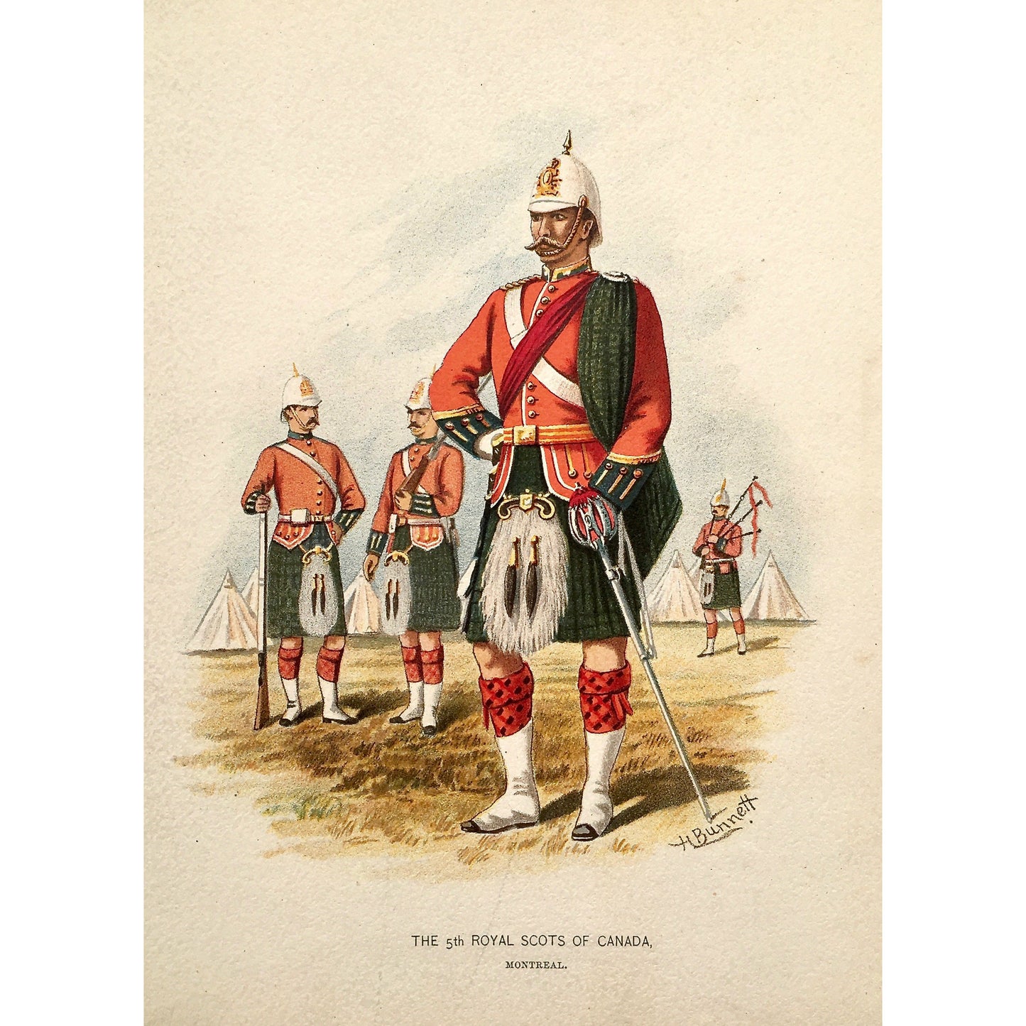 Keywords: The 5th Royal Scots of Canada, Scots, Royal Scots, Scottish, Scotland, Kilts, bagpipes, Montreal, Canada, Artillery, Military, Military Costume, Horses, Riding, Costume, Uniform, Her Majesty's Army, Regiments, Queen's Forces, H. Bunnett, Bunnett, Sword, Army, London, 1890, Military Prints, Canadian, Canadian Military, Canadian Army, Armed Forces, Military Uniform, Chromolithograph, J. S. Virtue & Co.,